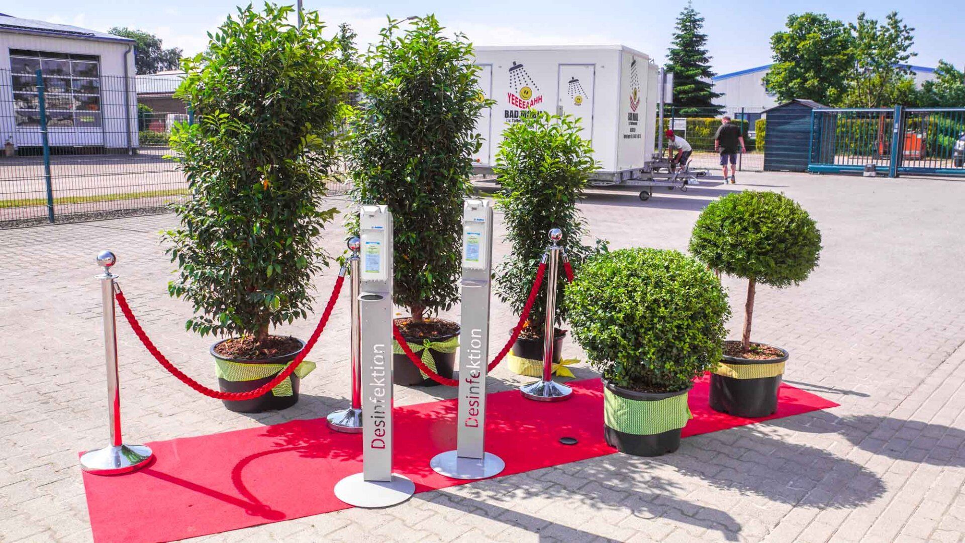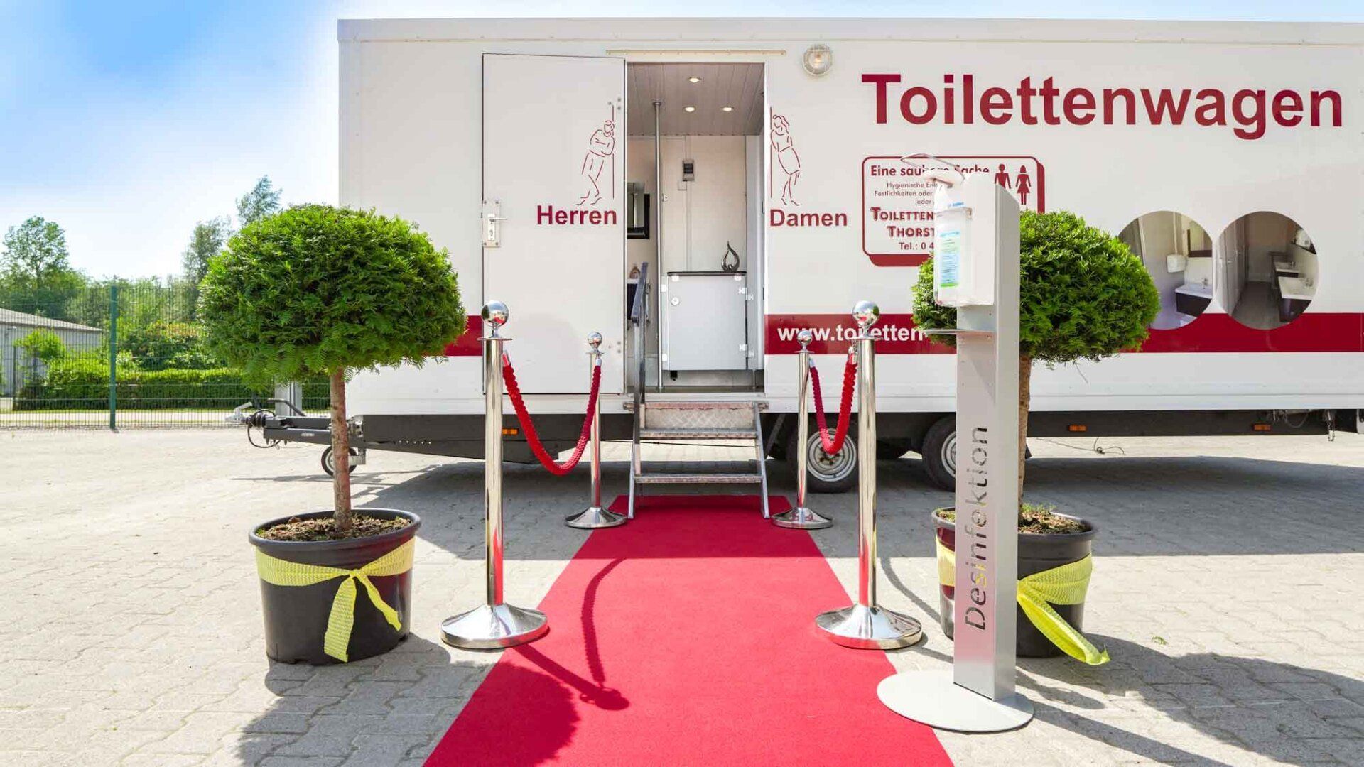 Durch zusätzliche dekorative Pflanzen oder Teppiche lässt sich Ihr gemieteter Toilettenwagen optisch enorm aufwerten.